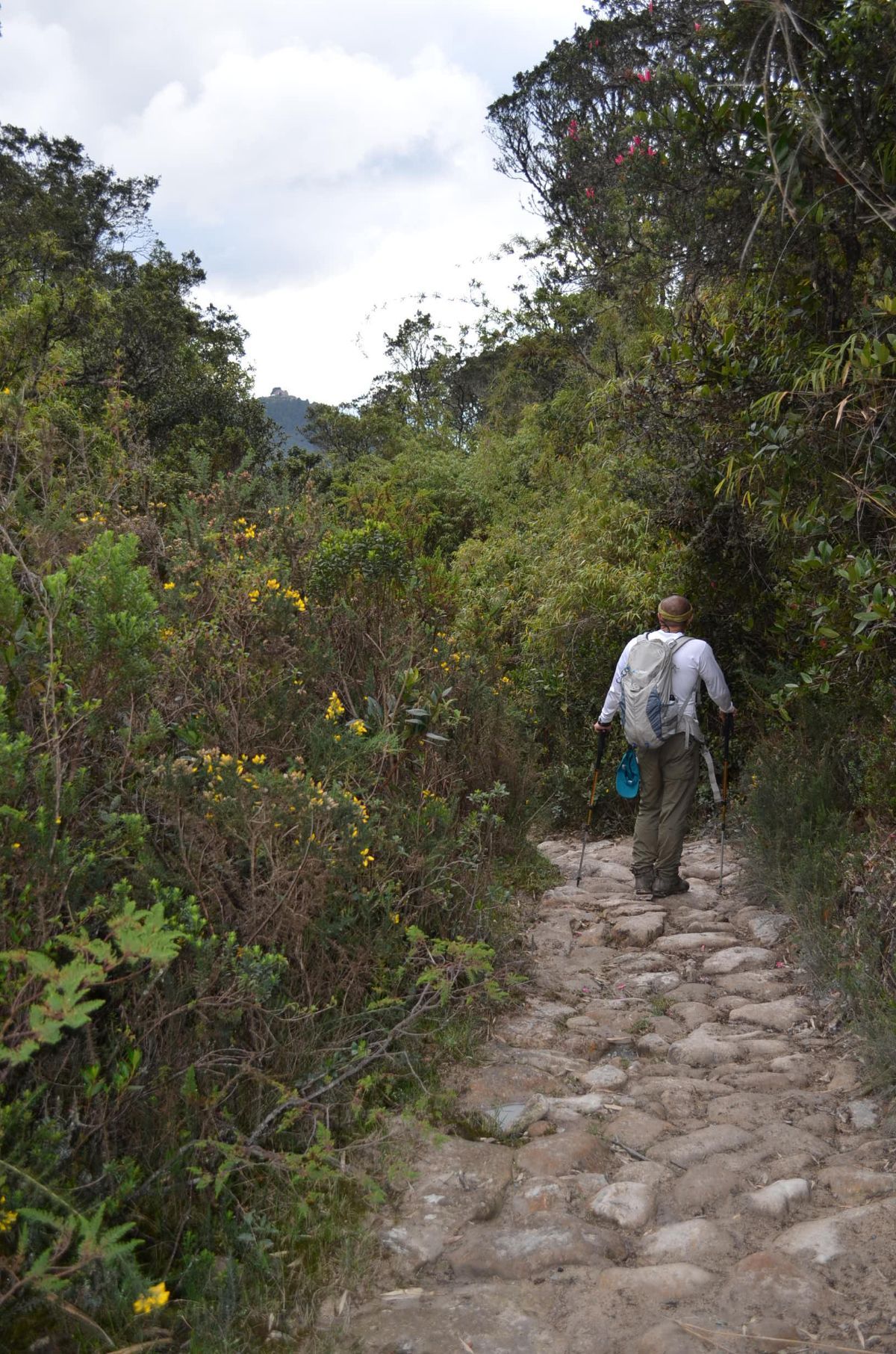 Se encontrarán algunos campesinos cruzando el camino, es un sendero solitario, un ascenso por un camino en piedra que dura ocho horas hasta Monserrate. La caminata inicia en el “kilómetro 11”, allí se puede llegar tomando un transporte intermunicipal que se dirija al municipio de Choachí. Un bosque de eucaliptos conserva la neblina del bosque altoandino. Al llegar a Monserrate se debe descender en funicular, ya que actualmente el sendero se encuentra en restauración. También se puede realizar el sendero desde Monserrate a Choachí, y si la energía sobra, visitar la cascada de La Chorrera.